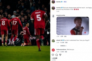他也在賽后通過社媒曬出自己的滑跪慶祝照,并配文:“顯然對結果感到失望,但也為我在利物浦的首次雙響感到高興和自豪。”