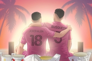 此役阿爾巴、布斯克茨為邁阿密國(guó)際踢滿全場(chǎng),兩人本賽季結(jié)束后退役。美職聯(lián)官方社媒曬出為阿爾巴、布斯克茨制作的海報(bào),配文:“懷抱最后一座獎(jiǎng)杯,并肩策馬,步入夕陽(yáng)。約迪·阿爾巴??塞爾吉奧·布斯克茨。”