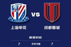中超聯(lián)賽官方曬出兩隊(duì)的交手記錄,雙方歷史共對(duì)陣7次,成都蓉城4勝2平1負(fù)占據(jù)明顯上風(fēng)。