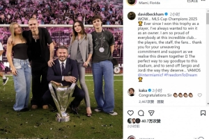邁阿密國際老板貝克漢姆社媒曬家人與獎杯的合照,并寫道:”2025年美職聯(lián)冠軍??自從作為球員捧起這座獎杯以來,我就一直渴望以老板身份再次奪冠。”