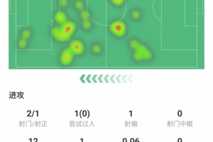 射門2次射正1次,嘗試過人1次,丟失球權(quán)12次,約為1次,預(yù)期進(jìn)球0.06球