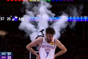GIF-煙霧機(jī)突然啟動(dòng)致比賽暫停 處理后比賽恢復(fù)