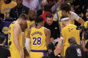楊毅:湖人這個(gè)隊(duì),東契奇、里夫斯、老詹,你三位一位都防不了,是吧?球隊(duì)三個(gè)頭牌一位都防不了,那你怎么防?是不是那么再加上這個(gè)首發(fā)里邊還有八村塁來說,就是他有他的特長(zhǎng),他能頂一下,但是你真正讓他換到外邊防一二號(hào)位,他也防不了,這四個(gè)人都防不了突破。