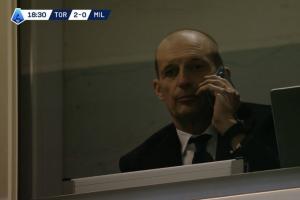 體育資訊12月09日訊 意甲第14輪米蘭客戰(zhàn)都靈,米蘭在第17分鐘0-2落后。隨后導(dǎo)播鏡頭捕捉到,因紅牌停賽的阿萊格里只能在看臺通過電話指揮,隨后米蘭成功連扳3球!
