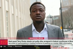 體育資訊12月9日訊 據(jù)ESPN法律分析師瑞安·史密斯報(bào)道,熱火后衛(wèi)特里·羅齊爾今日在布魯克林聯(lián)邦法院出庭,對(duì)非法體育博彩起訴書中的兩項(xiàng)聯(lián)邦指控表示不認(rèn)罪,他以300萬(wàn)美元的保釋金獲釋。