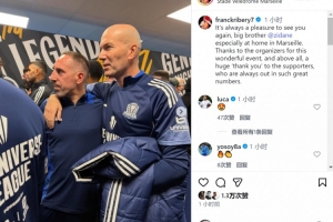 里貝里與齊達(dá)內(nèi)出席了在馬賽舉辦的“宇宙聯(lián)賽”活動,里貝里社媒曬出與齊達(dá)內(nèi)的合照,配文:“再次見到你總是很高興,老大哥齊達(dá)內(nèi),尤其是在馬賽的主場。感謝組織方帶來這場精彩的活動,更要衷心感謝那些總是大批到場支持我們的球迷們。”
