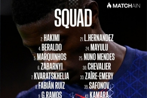 體育資訊9月21日訊 北京時間明天凌晨2點45分,巴黎將在法甲第5輪比賽中客場對陣馬賽,巴黎公布了此役的球員名單。登貝萊、杜埃、若奧-內(nèi)維斯、巴爾科拉因傷缺席。