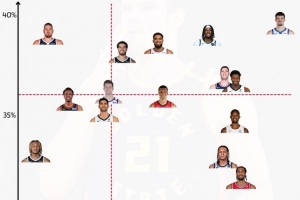 縱坐標(biāo)為三分命中率,橫坐標(biāo)為籃下防守率。