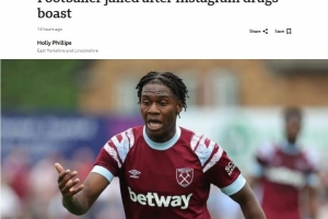 體育資訊12月9日訊 BBC報道,一名曾在Instagram上吹噓販毒的前西漢姆球員已被判入獄。