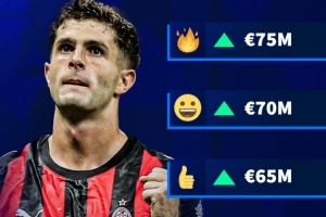 德國轉(zhuǎn)會(huì)市場預(yù)熱普利西奇的身價(jià)變化,最高可能達(dá)到7500萬歐元,最低保持6000萬歐元。