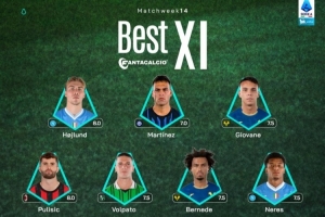 體育資訊12月9日訊 意甲第14輪戰(zhàn)罷,聯(lián)賽官方評(píng)本輪最佳陣,霍伊倫、勞塔羅、普利西奇在列。