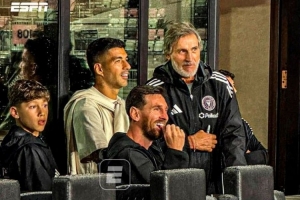 梅西組織的青少年錦標(biāo)賽“梅西杯”在邁阿密開幕,梅西與蘇亞雷斯來到現(xiàn)場,觀看巴薩對陣河床的青訓(xùn)梯隊比賽。