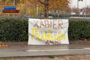 由于皇馬近期戰(zhàn)績不佳,主帥阿隆索面臨下課危機,有球迷在皇馬基地外掛橫幅支持阿隆索,橫幅上面寫著:“哈維(阿隆索),我們愛你,冠軍,加油。”