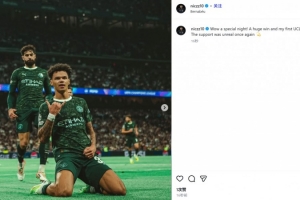他也在賽后通過(guò)社媒曬出自己的滑跪慶祝照,并配文:“哇,真是個(gè)特別的夜晚!一場(chǎng)酣暢淋漓的勝利,還有我的歐冠首球!球迷們的支持再次令人感到難以置信??”