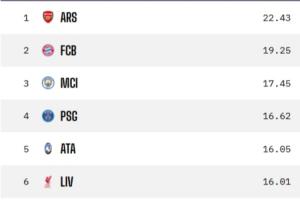 體育資訊12月11日訊 歐冠結(jié)束聯(lián)賽階段前6輪的爭(zhēng)奪,數(shù)據(jù)機(jī)構(gòu)Opta預(yù)測(cè)了歐冠聯(lián)賽階段的最終排名。