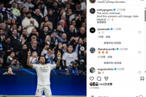 本場比賽羅德里戈率先破門,打破個人連續(xù)32場進(jìn)球荒,他在社媒曬出本場照片,配文寫道:“還要繼續(xù)努力,我們會改變現(xiàn)狀,Hala Madrid! ????”