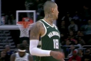 GIF-庫茲馬反擊背后運球過人上籃,被懷特干擾球