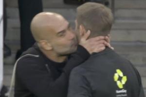 體育資訊09月22日訊 阿森納vs曼城,瓜迪奧拉場邊和裁判交流,還親了一口裁判的臉頰!