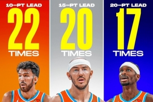 ?? 17場(chǎng)領(lǐng)先20分以上的比賽