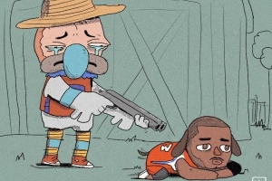 注:該球迷畫了很多快船輸球后吉祥物頹廢的搞笑漫畫,快船每輸一場,他就畫了幅,今天的插圖都是他畫的。