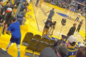 還能更離譜嗎?庫(kù)里在球員通道跨越全場(chǎng)掄進(jìn)了一記超超超超遠(yuǎn)三分