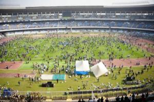 據(jù)印度媒體報(bào)道,由于賽事組織方的管理混亂和安全漏洞問題,梅西不得不提前結(jié)束繞場(chǎng),球迷對(duì)當(dāng)?shù)毓賳T發(fā)出噓聲、丟水瓶,最終大批球迷沖進(jìn)場(chǎng)內(nèi)對(duì)體育場(chǎng)進(jìn)行破壞。