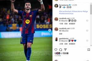 費(fèi)蘭-托雷斯賽后在社交媒體上曬出照片,慶祝取勝+打進(jìn)2球,配文:“??+??=????”