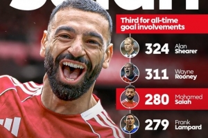 薩拉赫在英超中已經(jīng)直接參與280球超越蘭帕德,位居聯(lián)賽歷史第3位,僅次于希勒(324球)及魯尼(311球)。