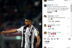 布雷默社媒曬出比賽照片,慶祝復出,他寫道:“準備好從這里與大家一起重新出發(fā)。”
