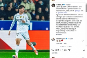 巴爾德佩尼亞寫道:“自童年起我就夢想著這一刻,昨日這個夢想成真了,在皇家馬德里完成西甲聯(lián)賽首秀。”