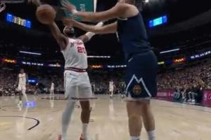 GIF-約基奇發(fā)球砸奧科吉胳膊出界