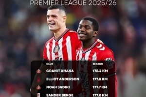 體育資訊12月16日訊 Stan Sport統(tǒng)計表明,扎卡是本賽季英超跑動距離最多的球員,前三中有兩名桑德蘭球員。
