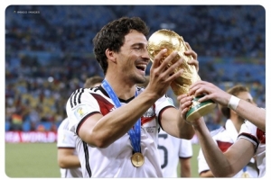 德國隊官方社媒曬出胡梅爾斯與大力神杯的合照,配文:“生日快樂,胡梅爾斯!2014年世界杯冠軍。”