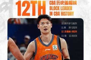 比賽進(jìn)行到第二節(jié),王哲林送出個(gè)人本場(chǎng)第2次蓋帽。至此,王哲林CBA生涯蓋帽總數(shù)上升至495次,超越易立的494次,升至CBA歷史蓋帽榜第12位!