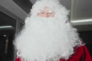 哈蘭德在化妝師的幫助下,粘上濃密的白眉毛和白胡子,雙頰抹上北極最著名居民特有的玫瑰紅胭脂。隨后他在外套里塞進(jìn)一個(gè)大枕頭。
