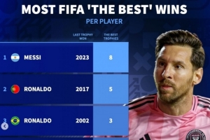 體育資訊12月17日訊 FIFA年度頒獎典禮結(jié)束,登貝萊獲FIFA年度最佳球員。德轉(zhuǎn)列FIFA年度最佳球員獲獎次數(shù),梅西8次最多,C羅第二,齊達(dá)內(nèi)、羅納爾多并列第三。