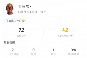 本場比賽上半場,亞馬爾充當(dāng)組織者角色,多次嘗試傳威脅球但收效甚微;下半場回歸右路,多次傳中也被對手?jǐn)r下。數(shù)據(jù)方面,亞馬爾本場3射0正,12次嘗試過人8次成功,狂丟29次球權(quán)。最終在比賽最后時刻助攻拉什福德破門,完成了自我救贖。