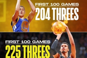 體育資訊9月22日訊 美媒Clutch Points曬出一張文班、庫(kù)里還有克萊的生涯前100場(chǎng)比賽三分球的命中總數(shù)圖。其中庫(kù)里生涯前100場(chǎng)進(jìn)了200個(gè)三分,而克萊是204個(gè),而文班作為內(nèi)線投中了225個(gè)。