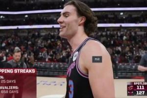 據(jù)統(tǒng)計,這是公牛在658天以來首次贏騎士,他們上場贏騎士可以追溯到2024年2月29日。