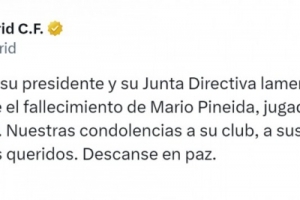 皇馬官方社媒寫道:“皇家馬德里俱樂部、主席及董事會對瓜亞基爾巴塞羅那俱樂部球員馬里奧·皮尼達的逝世深表哀悼,謹向其俱樂部、家人及所有親友致以最深切的慰問。愿逝者安息。”