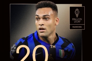體育資訊9月23日訊 2025年金球獎(jiǎng)排名陸續(xù)公布,國(guó)米前鋒勞塔羅第20,這也是其第四次獲得提名。