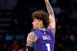 上半場(chǎng)拉梅洛·鮑爾11投7中,三分9中7砍下21分8助攻。