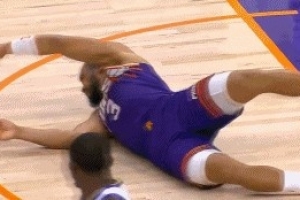 GIF-狄龍突破對抗波斯特上籃打進(jìn),噴裁判后腳一滑又摔倒