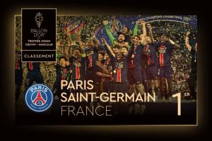 體育資訊9月23日訊 金球獎(jiǎng)?lì)C獎(jiǎng)典禮,巴黎圣日耳曼當(dāng)選最佳男足俱樂(lè)部。
