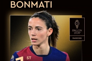 體育資訊9月23日訊 2025年女足金球獎前十排名出爐,邦馬蒂第一,卡爾登泰第二,魯索第三。