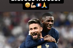 吉魯在社媒配文寫道:“太棒了,我的兄弟登貝萊!”