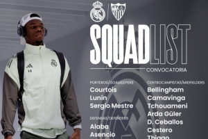 體育資訊12月20日訊 北京時間12月21日凌晨4:00,2025-26賽季西甲聯(lián)賽第17輪,皇馬將在伯納烏球場迎戰(zhàn)塞維利亞。賽前,皇馬官方公布球隊本場大名單,巴爾韋德缺席,阿拉巴、門迪和卡馬文加在列。