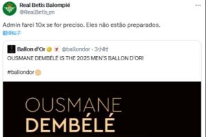 體育資訊09月23日訊 2025金球獎由巴黎球員登貝萊斬獲,貝蒂斯轉(zhuǎn)發(fā)球員獲獎的動態(tài)并表示:若有必要小編我會發(fā)十遍,他們還沒準(zhǔn)備好。
