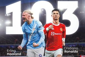 至此,哈蘭德在英超的進(jìn)球已經(jīng)來到103粒,這追平了C羅在英超的進(jìn)球數(shù)。