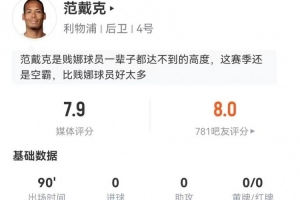 體育資訊12月21日訊 利物浦在本輪英超2-1力克熱刺,范戴克本場數(shù)據(jù)如下: